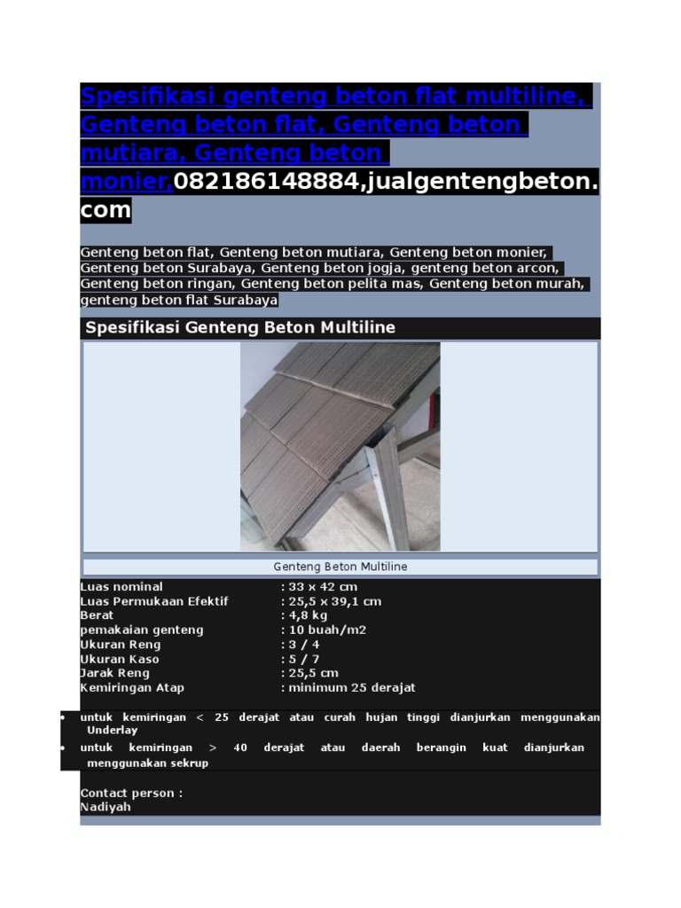 ukuran genteng beton - genteng beton flat,genteng beton ... from gentengbetonistimewa.files.wordpress.com Namun seiring dengan meningkatnya kebutuhan genteng beton di indonesia awal. Nah bagi anda yang sedang mencari genteng untuk rumah anda, bisa hubungi kami dengan. Genteng beton flat, genteng beton mutiara, genteng beton monier, genteng beton surabaya, genteng beton jogja, genteng beton arcon, genteng beton ringan, genteng beton pelita mas, genteng beton murah, genteng beton flat surabaya spesifikasi genteng beton multiline genteng beton multiline luas nominal : Genteng beton mutiara type garuda 02188950987, 081280873788, 0817186878. Harga jual genteng beton flat minimalis monier, cisangkan, mutiara, cengkareng permai cp 2012, 2013, 2014, 2015, 2016, 2017 Berdiri sejak 20 tahun yang lalu dan berasal dari kota yogyakarta. Genteng beton mutiara flat polosrp7.500: 300cm x 105cm x 4mm.